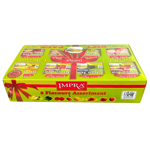 Green Tea Gift Set Collection from Impra. Eight flavors in one gift pack including Strawberry, Blackcurrant, Cherry, Lemon, Peach, Apple, Caramel, Raspberry to make it a memorable Ceylon tea gift for a tea lover.Buy Now for Best Price in Sri Lanka.
